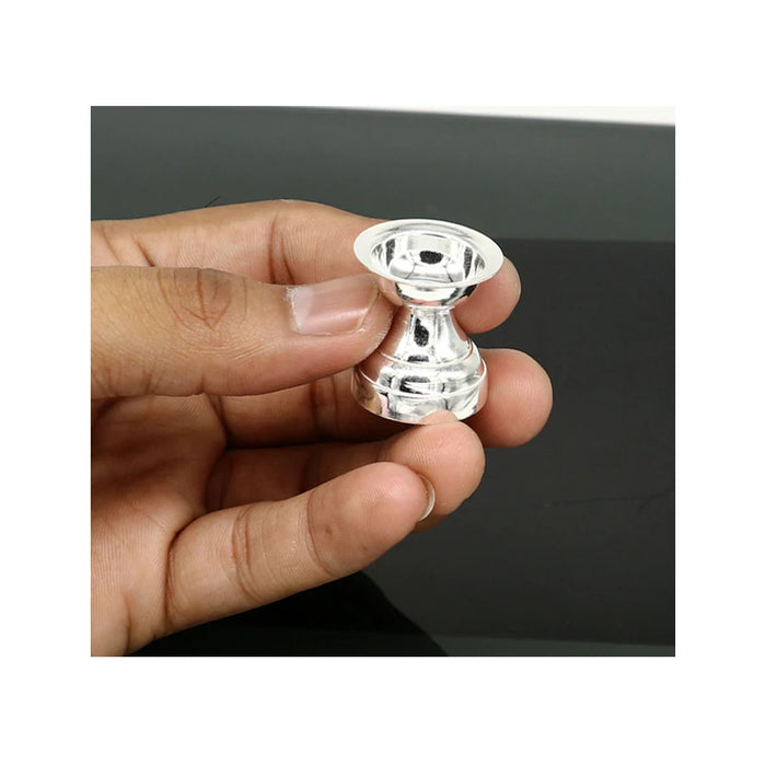 pure 999 fine silver handmade glossy shiny oil lamp, silver utensils, silver vessels, silver art decor. oil lamp is use in home office temple. Silver puja articles
