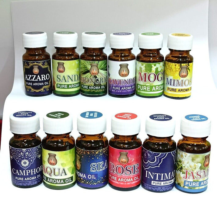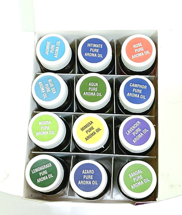 Best Quality Aroma Essential Oil Combo Set of 12 bottles | Lavender, Rose, Lemongrass, Jasmine, Blue Sea, Aqua Pure, Camphor and etc
