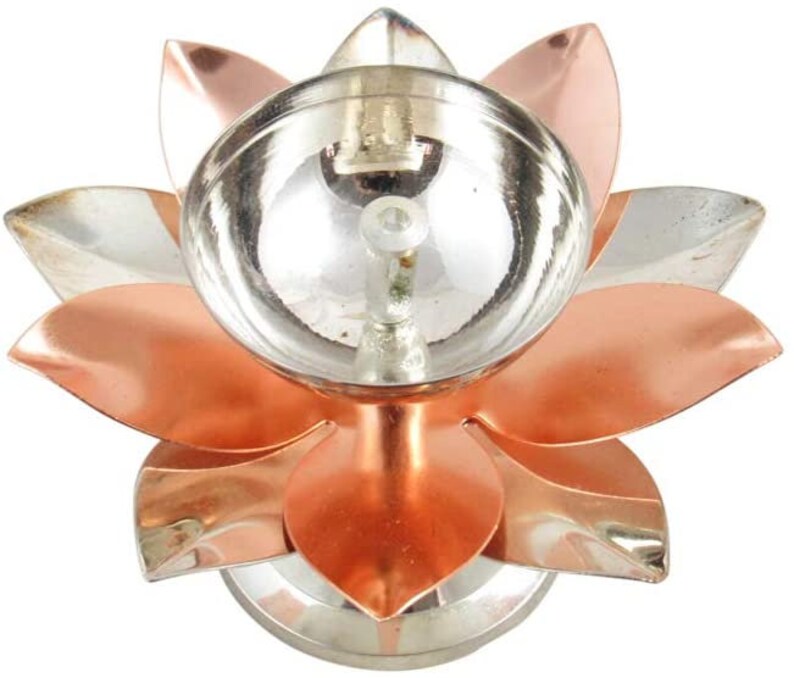 Copper Lotus Shape Diya for Pooja, Brass Pooja Articles for Gift, Return Gifts for Diwali - set of 5